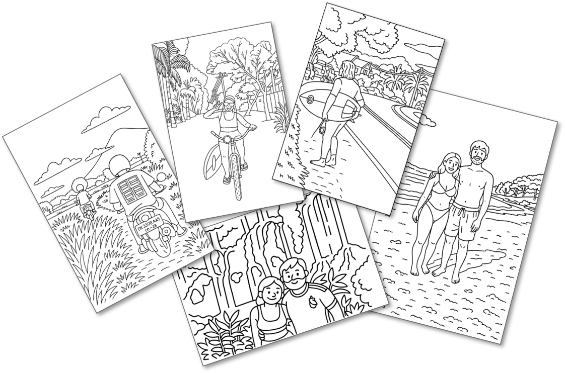 Choisissez vos plus beaux souvenirs à transformer en coloriages personnalisés.